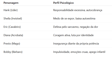 Cada personagem representa um perfil emocional ou comportamento humano comum: