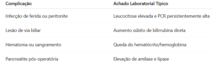 Alguns achados laboratoriais podem sinalizar complicações pós-operatórias: