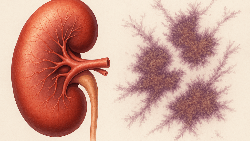 Estudos recentes demonstram que o acúmulo de α‑sinucleína — a proteína estrelinha nos cornos da Doença de Parkinson — pode originar-se nos rins, não apenas no cérebro . Experimentos em tecido humano e modelos animais sugerem que: