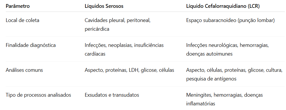 Diferenças Fundamentais entre Líquidos Serosos e LCR nos Exames Laboratoriais