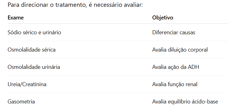 📌 Correções rápidas podem resultar em Lesão Neurológica Permanente (Síndrome da Desmielinização Osmótica).