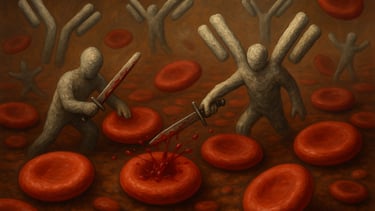 Isso significa que o sistema imunológico, que normalmente protege o corpo contra infecções, produz anticorpos que atacam as próprias células sanguíneas, causando destruição progressiva e queda acentuada nas contagens hematológicas.