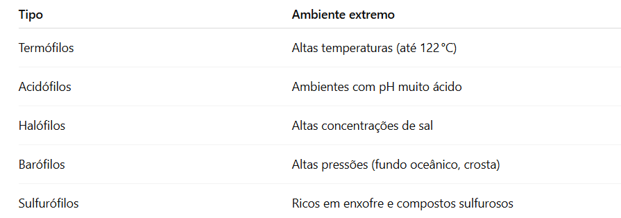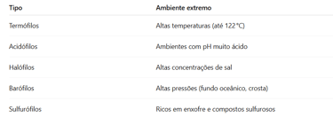 A NASA estuda extremófilos como análogos para possíveis formas de vida em ambientes extremos como: